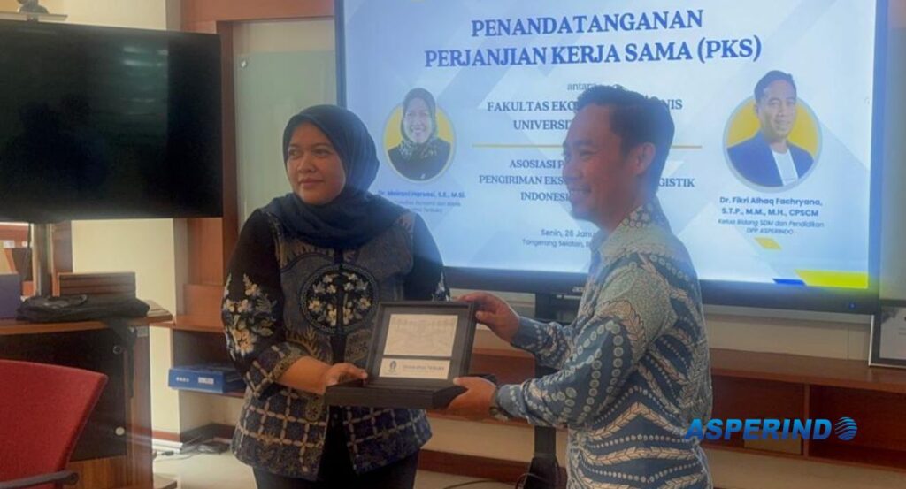 ASPERINDO.ID – Jakarta, 26 Januari 2026. Asosiasi Perusahaan Jasa Pengiriman Ekspres, Pos, dan Logistik Indonesia (ASPERINDO) secara resmi melaksanakan penandatanganan Perjanjian Kerja Sama (PKS) dengan Fakultas Ekonomi dan Bisnis Universitas Terbuka (FEB UT) pada Senin, 26 Januari 2026, bertempat di Kampus Universitas Terbuka, Jakarta.