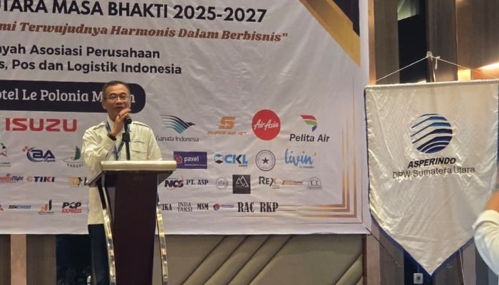 ASPERINDO.ID, Medan, 14 Oktober 2025. Dewan Pengurus Wilayah (DPW) Asosiasi Perusahaan Jasa Pengiriman Ekspres, Pos, dan Logistik Indonesia (Asperindo) Sumatera Utara periode 2025–2027 resmi dikukuhkan pada Selasa (14/10/2025) di Hotel Polonia, Medan.